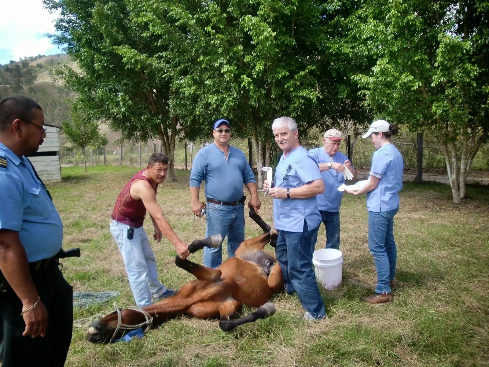 Robert Jones and Denice Schlingman took two friends, Pastor Doug Sedore and his wife Donna Sedore along with 3 veterinary students from the USA to Rancho Pariso , a ranch owned by Honduras Outreach International (HOI) under the affiliation of Christian Veterinary Missions. The students came from Mississippi , Missouri and Minnesota Veterinary Schools and we all met for the first time in Houston ,Tx. We spent a week providing surgery, vaccinations, and deworming to the local village animals. Our pastor did some skits and lessons for the children while we were in the village. It was a very rewarding time for everyone. We had a chance to use the skills that God gave us to help the people and animals in Honduras and we renewed our relationship with God and each other.